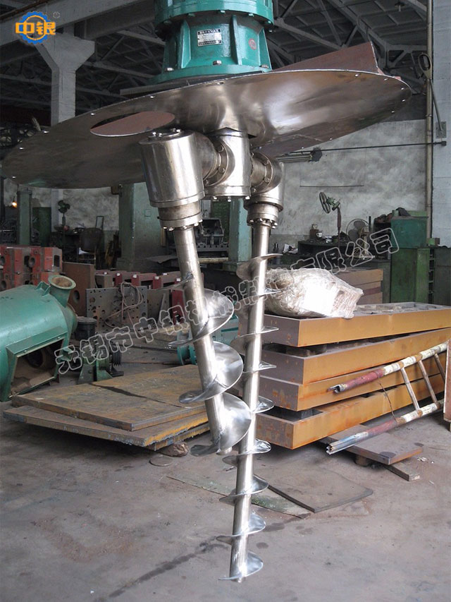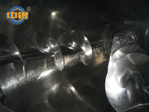 雙螺旋錐形混合機的攪拌部件為兩條不對稱懸臂螺旋,長短各一,它們在繞自己的軸線轉(zhuǎn)動(自轉(zhuǎn))的同時,還環(huán)繞錐形容器的中心軸;借助轉(zhuǎn)臂的回轉(zhuǎn)在錐體壁面附近又作行星動(公轉(zhuǎn));該設備通過螺旋的公、自轉(zhuǎn)使物料反復提升,在錐體內(nèi)產(chǎn)生剪切、對流、擴散等復合運動,從而達到混合的目的。產(chǎn)品可根據(jù)要求設計外夾套(加熱、冷卻),噴霧器,廣泛應用于化工、醫(yī)藥、農(nóng)藥、染料、建材等粉體與粉體的混合、反應。 該機根據(jù)工藝要求可在混合機筒體外增加夾套,通過向夾套內(nèi)注入冷熱介質(zhì)來實現(xiàn)對物料的冷卻或加熱;冷卻一般泵入工業(yè)用水,加熱可通入蒸汽或電加熱導熱油。