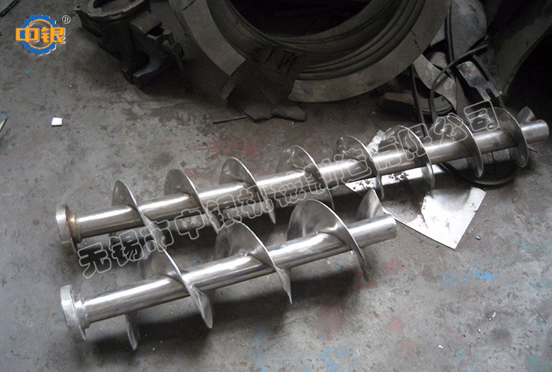 雙螺旋錐形混合機筒內(nèi)兩只非對稱螺旋自轉(zhuǎn)將物料向上提升,轉(zhuǎn)臂慢速公轉(zhuǎn)運動;使螺旋外的物料,不同程度進入螺柱,從而達到全圓周方位物料的不斷更新擴散,被提到上部的兩股物料再向中心凹穴匯合,形成一股向下的物料流,補充了底部的空缺,從而形成對流循環(huán)的三重混合效果;標準型錐形螺旋混合機有兩根攪拌螺旋,實際應用中根據(jù)設備規(guī)格大小可以采用單(一根長螺旋)、雙(長短各一兩根不對稱螺旋)、三(兩短一長對稱布置)根螺旋;理論上攪拌螺旋越多,混合效果越好;設備一般采用梅花狀“錯位閥”,此閥與長螺旋底部貼合緊密,有效減少混合死角,驅(qū)動形式有手動和氣動可選;根據(jù)用戶需要,也可加裝蝶閥、球閥、星形卸料器、邊出料等。