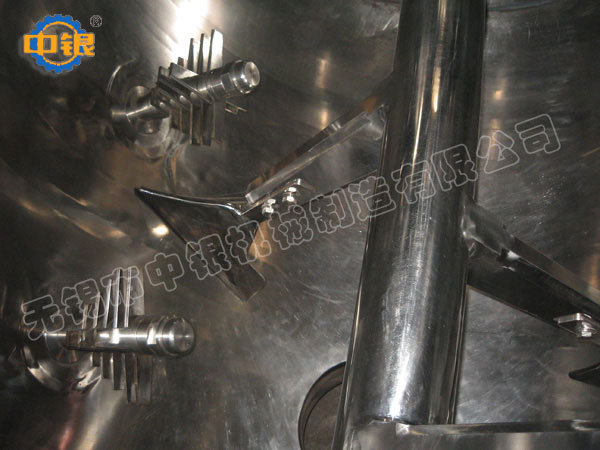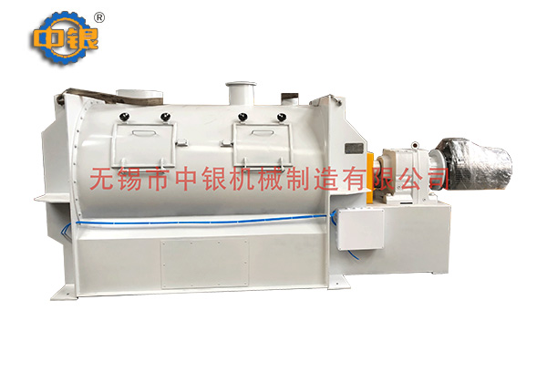 該機由傳動機械,臥式筒體,犁刀和飛刀組等四部份組成。旋轉的飛刀強烈拋散,在犁刀和飛刀的復合作用下,從而在極短的時間內(nèi)達到均勻的混合。